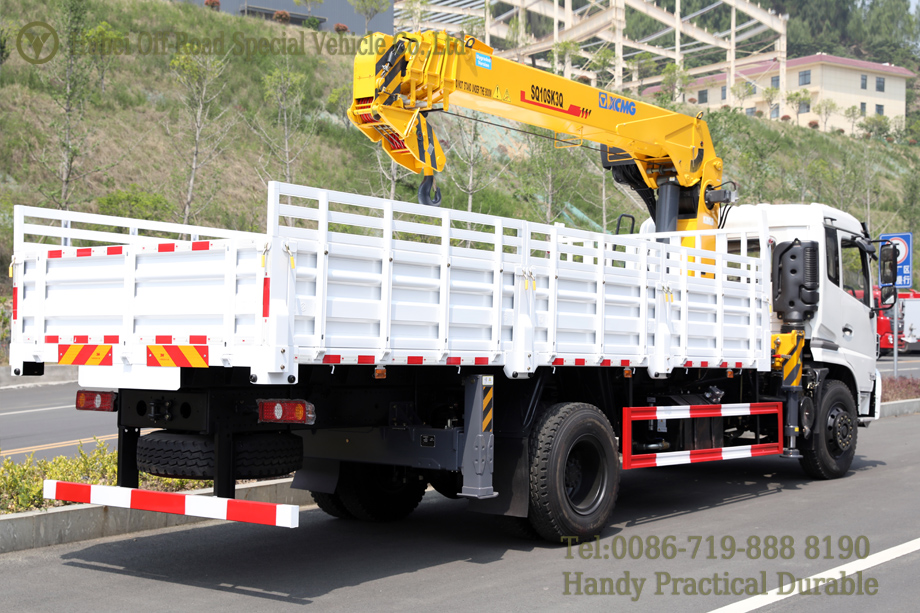 Dongfeng 10 တန် 4*2 ယာဉ်ပေါ်ပါကရိန်းသည် 10 တန်အထိ သယ်ဆောင်နိုင်သည့် Xugong SQ10SK3Q လေးလက်မောင်းဖြောင့်-လက်မောင်းကရိန်းကို လက်ခံပါသည်။ကရိန်းလက်မောင်း၏ အမြင့်ဆုံး ကြွနိုင်မှုအား 12 မီတာအထိ တိုးမြှင့်နိုင်ပြီး 14 မီတာအထိ မြှင့်တင်နိုင်သည်။အပြည့်အ၀တိုးချဲ့ပြီးနောက်၊ ကရိန်းသည် ကုန်ပစ္စည်း ၁.၅ တန်ကို ထမ်းနိုင်သည်။