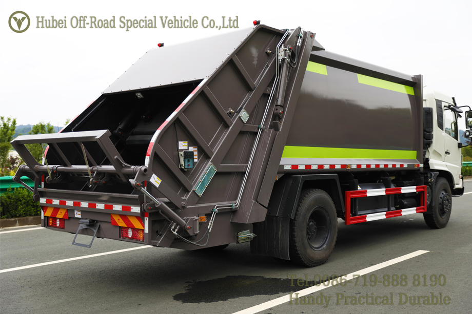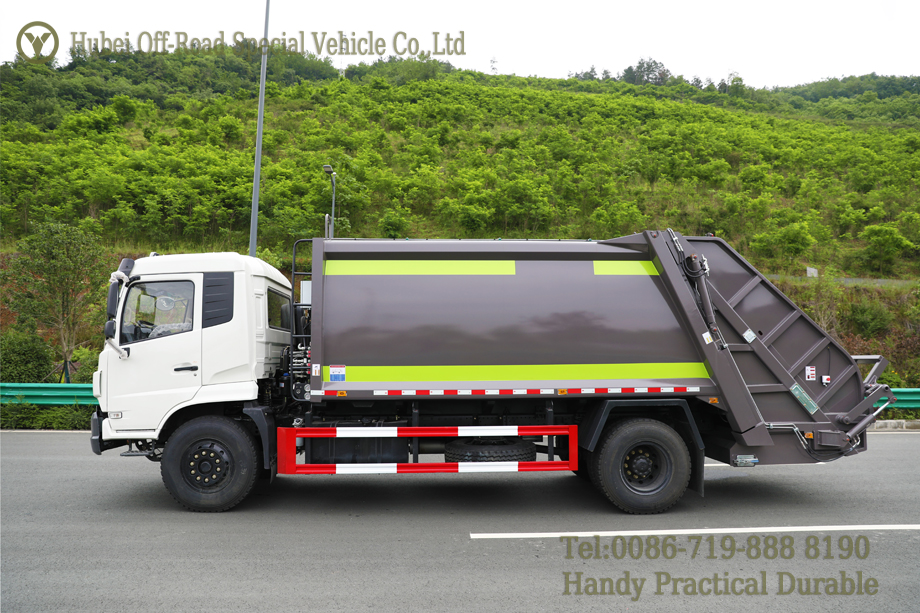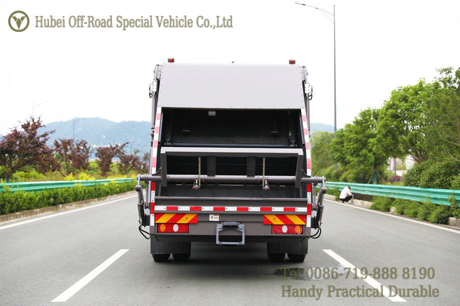 | အပေါ်ပိုင်းဖွဲ့စည်းမှု | 4 မီလီမီတာ ဘေးဘက်ပန်းကန်နှင့် 5 မီလီမီတာ အောက်ခြေပြားပါရှိသော ခိုင်ခံ့မြင့်မားသော သံမဏိပြားဖြင့် ပြုလုပ်ထားသည့် 14 စတုရန်းပုံး အမှိုက်ပုံး၊ ဟိုက်ဒရောလစ်သော့ခတ်ကိရိယာပါသော အဖြည့်ဆလင်ဒါ၊ အလိုအလျောက်လည်ပတ်မှုနှင့် ထိန်းချုပ်မှုမုဒ်နှစ်ခု၏ လက်ဖြင့်လုပ်ဆောင်မှုဖြင့် ဘတ်စ်ကားထိန်းချုပ်နိုင်သည် ။ ကားနောက်ဘက်တွင် စည်လှည့်ကိရိယာ (240L နိုင်ငံတကာပလတ်စတစ်အမှိုက်ပုံး ၂ ဗူးကို တချိန်တည်းဆွဲထားနိုင်သည်)၊ | |